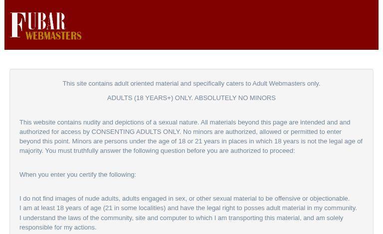 FUBAR Webmasters is a site for people in the adult world. It helps you meet other people and share ideas.